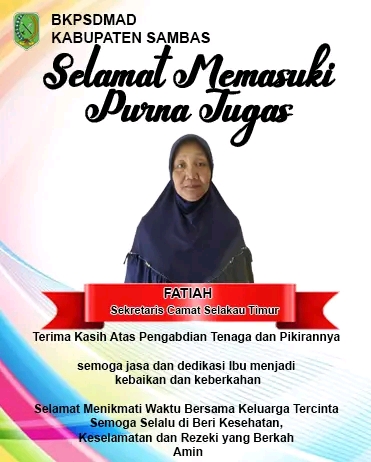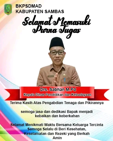 Sambas – Pensiun atau purna tugas merupakan suatu hal yang pasti bagi setiap Pegawai Negeri Sipil (PNS). Setiap PNS yang mengabdikan dirinya sebagai pelayan bagi masyarakat akan mencapai kelulusan setelah tidak lagi menjadi PNS, dalam hal ini yakni Bapak Drs. Sabhan M. Pd (Kepala Dinas Pendidikan dan Kebudayaan) dan Ibu Fatiah (Sekretaris Caman Selakau Timur).