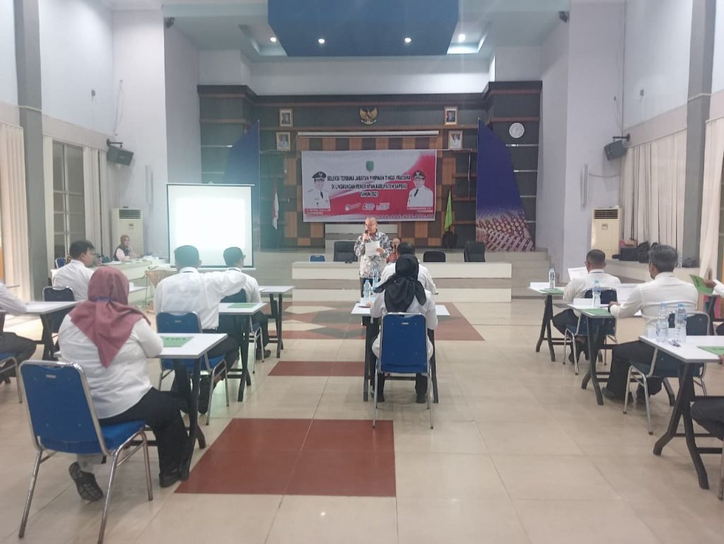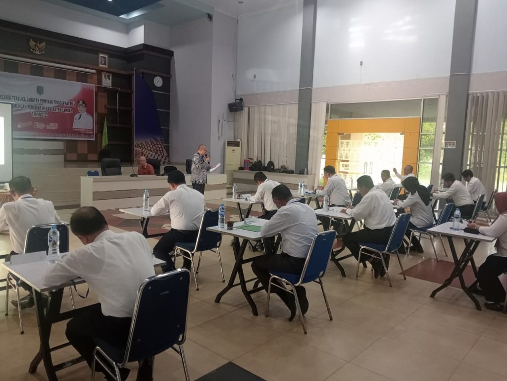 Proses seleksi terbuka Jabatan Pimpinan Tinggi Pratama (JPTP) di Lingkungan Pemerintah Kabupaten Sambas untuk tahun 2025 terus berjalan dan kini memasuki tahap Seleksi Kompetensi Manajerial dan Sosial Kultural pada hari rabu dan kamis di Aula Diklat BKPSDMAD Kabupaten Sambas.